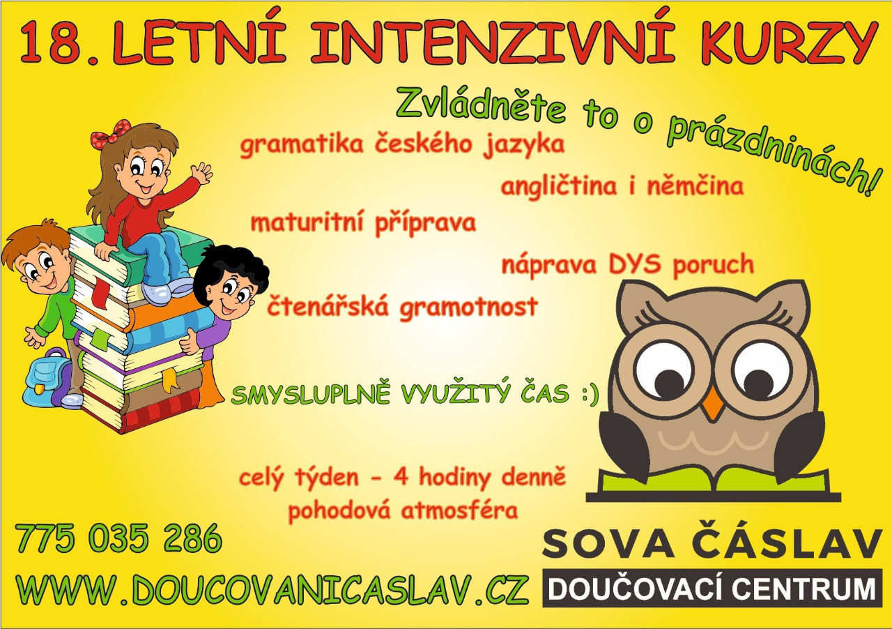 Už 18. rokem plánujeme LETNÍ INTENZIVNÍ KURZY, které jsou velmi oblíbené a my si je s vašimi dětmi nesmírně užíváme. Prázdniny jsou jediné období, kdy se nevalí hromady nového učiva a my můžeme dohánět a zlepšovat, co je třeba.
